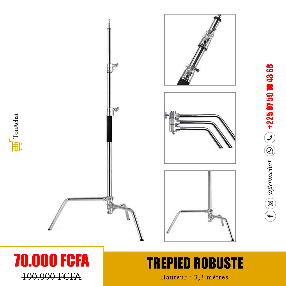 Ce trépied robuste de 3,3 mètres est parfait pour supporter vos projecteurs LED sans risque de basculement. Grâce à sa conception solide, vous pouvez être sûr que vos éclairages resteront stables et sécurisés pendant toute votre utilisation. Un outil fiable pour tous vos besoins en éclairage de projection.